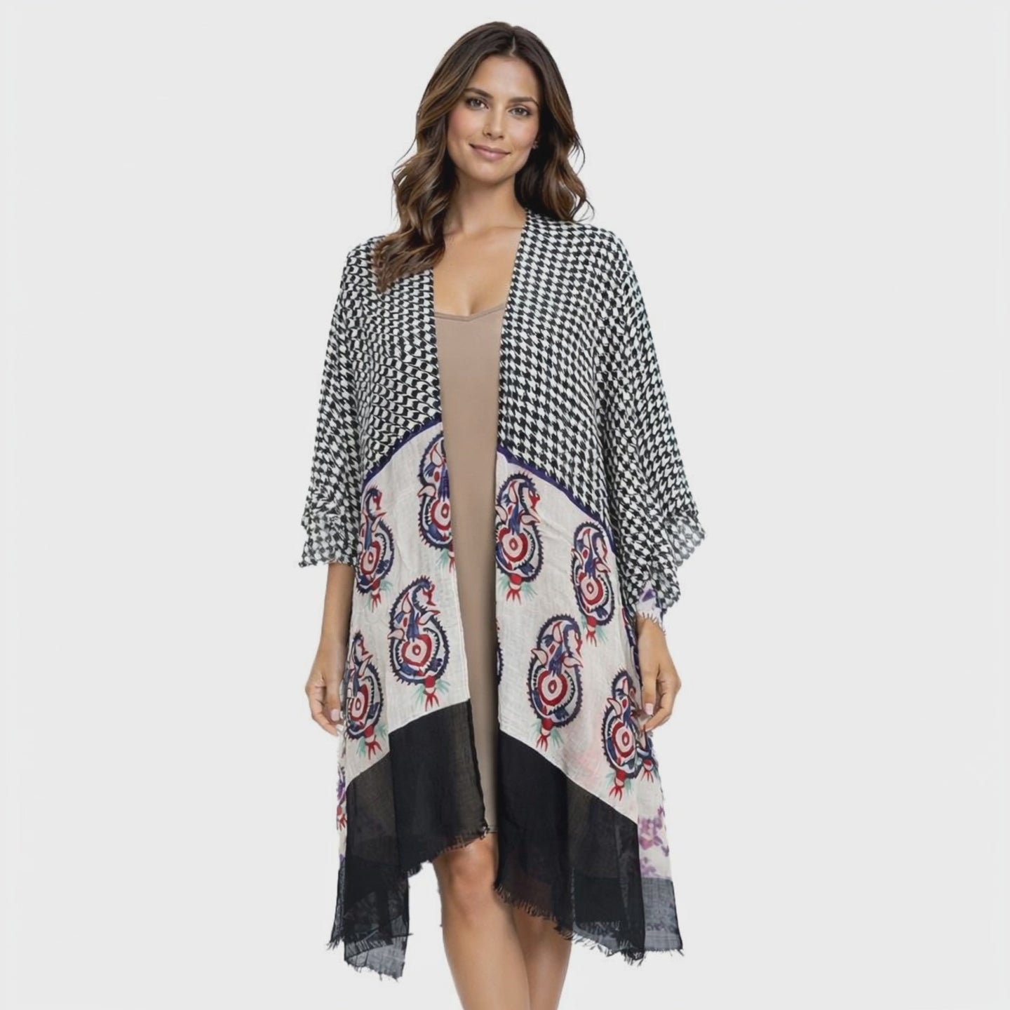 A versatile knee-length kimono designed for reliable boutique sell-through—lightweight, flattering, and easy to merchandise on the floor.
