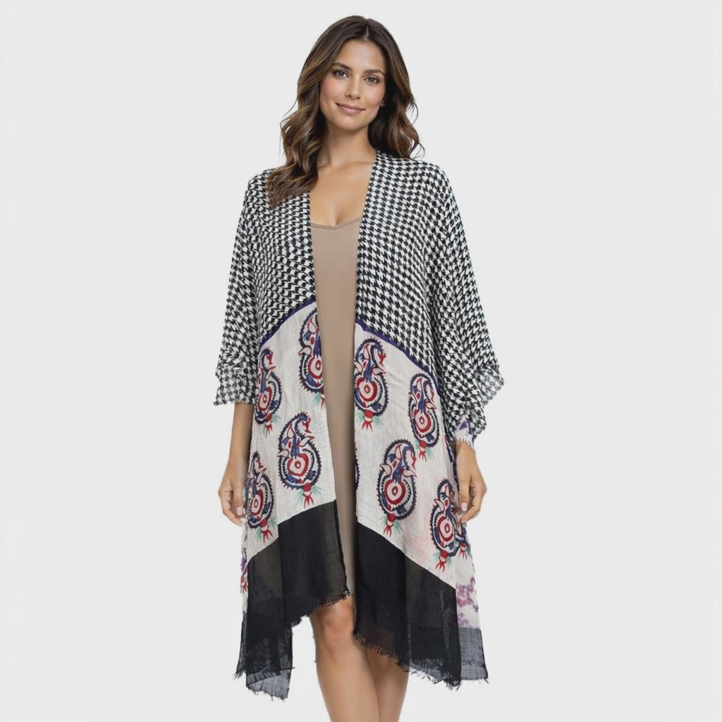 Lightweight and breathable, this kimono transitions seamlessly from spring through fall and layers comfortably in cooler months, making it a seasonless staple for boutique assortments.