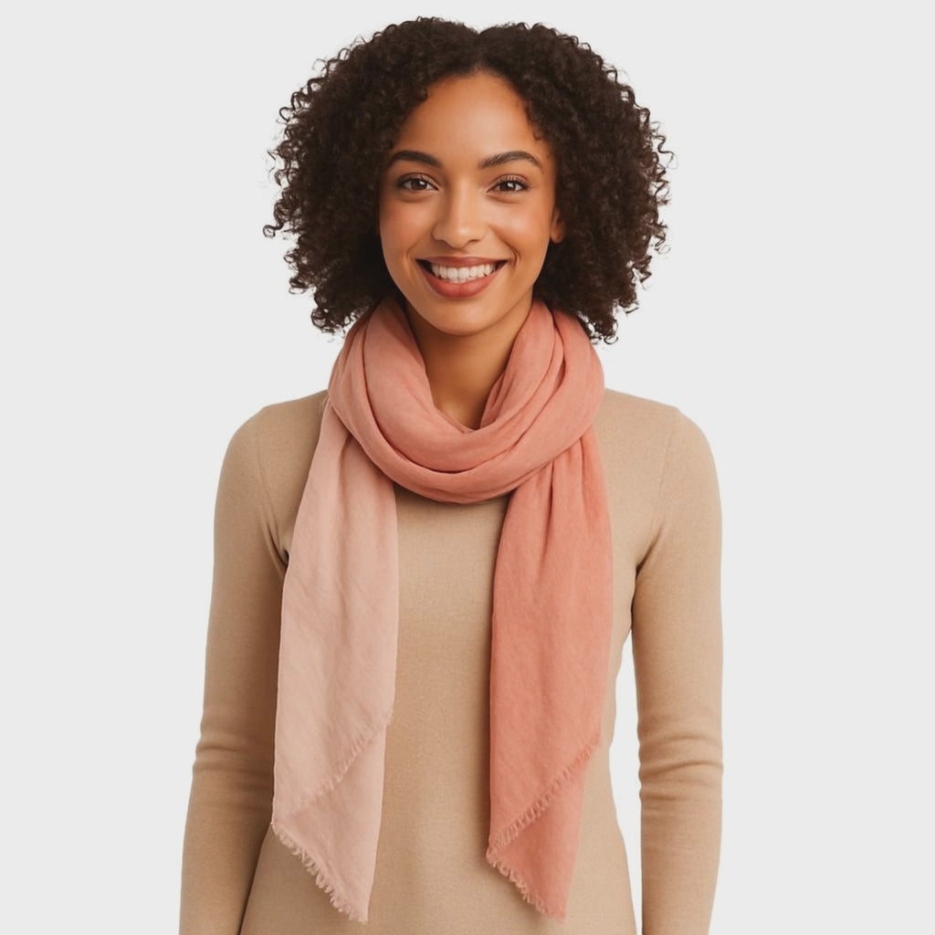 Available in a wide range of colorways — from bold contrasts to soft neutrals — the dip dye design adapts effortlessly to any style. Lightweight yet cozy, this scarf drapes beautifully, whether styled as a shawl, looped as a wrap, or tied with casual ease. Perfect for year-round wear, it’s a true essential for those who love subtle drama and timeless charm.